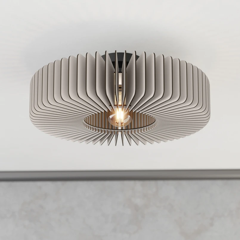 Runde Deckenleuchte Palombaia mit Holzlamellen und E27-Fassung