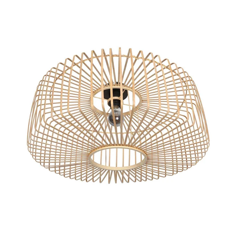 Mit der naturfarbenen Deckenleuchte Bloeba zieht natürliche Wärme und Stil in jeden Raum. Die Leuchte besticht durch ihren Schirm aus Bambus in sanftem Naturton und wird zum Blickfang in jedem Raum. Die offene Struktur des Schirms sorgt für ein faszinierendes Lichtspiel, das eine behagliche Atmosphäre schafft. Die Leuchte ist mit einer E27-Fassung ausgestattet, so dass je nach Lichtwunsch eine passende Lichtquelle gewählt werden kann.