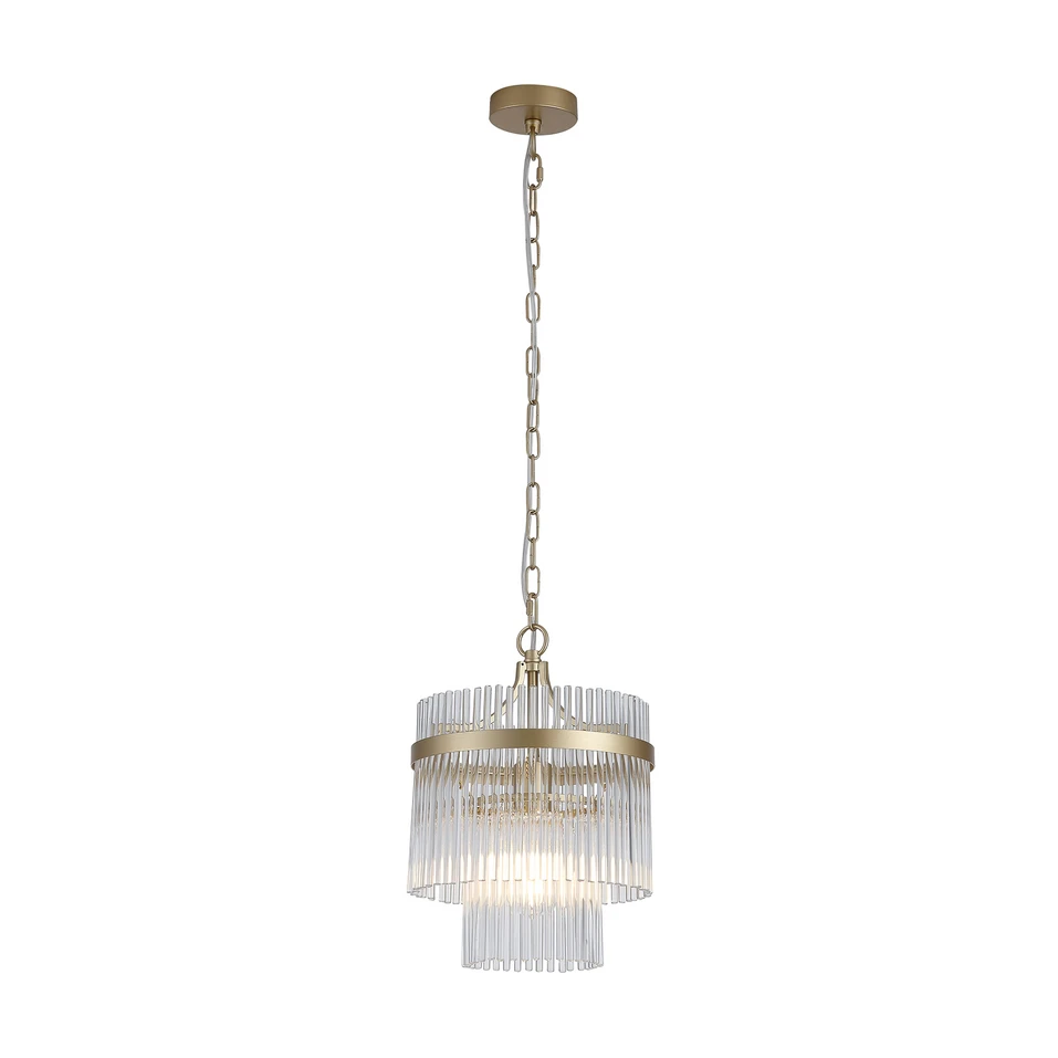 Die Hängelampe Lara vereint stilvolle Ästhetik mit funktionaler Beleuchtung und ist damit die ideale Ergänzung für Wohn- und Esszimmer. Gefertigt aus klarem Glas und Metall mit einem glanzvollen Goldton, verleiht sie jedem Raum eine besondere Note. Die sorgfältige Materialauswahl sorgt für eine langlebige und ansprechende Beleuchtungslösung, die sich harmonisch in verschiedene Einrichtungsstile einfügt.