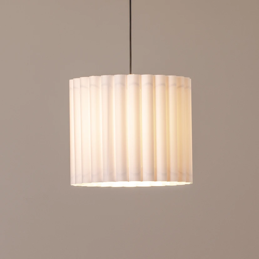 Die Hängeleuchte Aria mit einem wellig gestalteten Schirm aus hochwertiger Microfaser, vereint stilvolle Eleganz mit vielseitigen Einsatzmöglichkeiten. Ihr zeitloses Design macht sie zu einem idealen Beleuchtungselement für verschiedene Wohnbereiche, sei es im Esszimmer, Wohnzimmer, Schlafzimmer oder Flurbereich. Die sorgfältige Auswahl der Materialien und die Fertigung in Europa unterstreichen die Qualität und Langlebigkeit dieses Produkts.