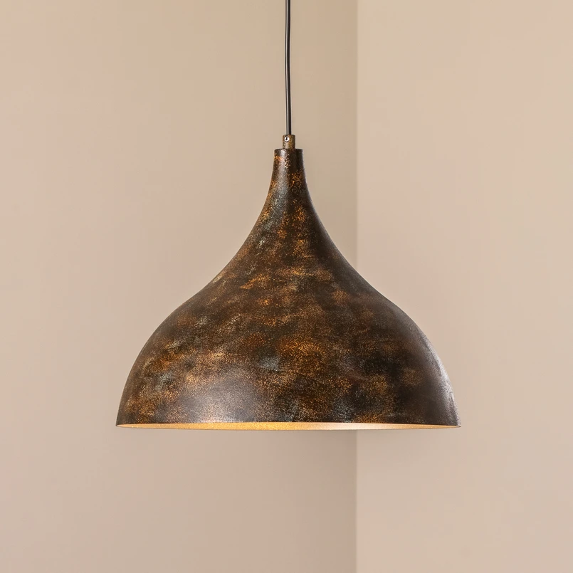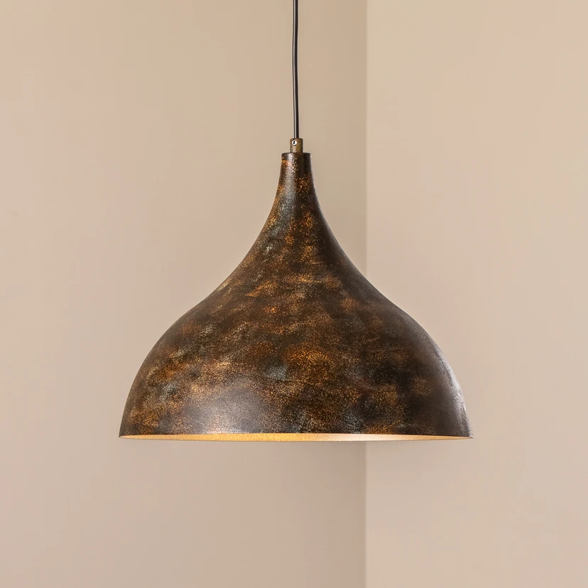 Hängeleuchte Bitlislim mit antikbraunem, weitem Schirm aus Metall