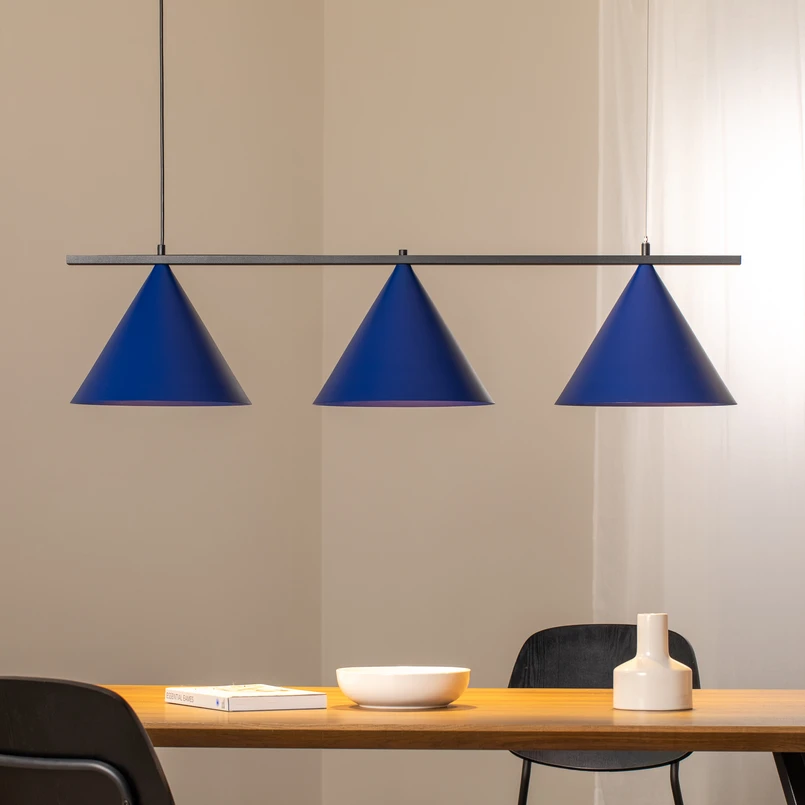 Entdecken Sie die Hängeleuchte Capital – ein Meisterwerk der Beleuchtung, das Eleganz und Funktionalität in Ihren Wohn- oder Essbereich bringt. Die dreiflammige Leuchte, gefertigt aus hochwertigem Metall, präsentiert sich in einem ansprechenden blauen Farbton mit schwarzen Akzenten, der eine stilvolle Atmosphäre schafft.