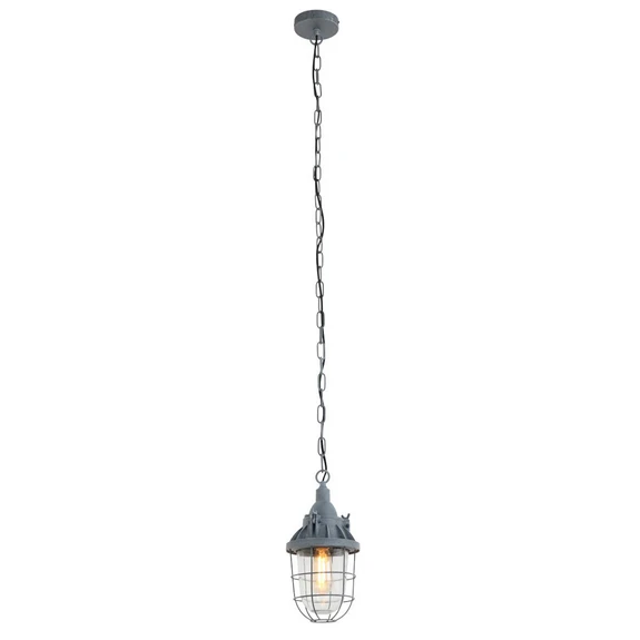 Die Pendelleuchte Ebbe ist eine im industriellen Design gestaltete Lichtquelle mit einem klaren Glasschirm, der von einem Korbschirm aus Metall umgeben ist. Die metallene Hängelampe mit ihrem scheunenlampenähnlichen Design ist eine markante Ergänzung für jedes Interieur. Die Leuchte ist dank der E27-Fassung für alle Arten von Lichtquellen bis zu 40 Watt geeignet.