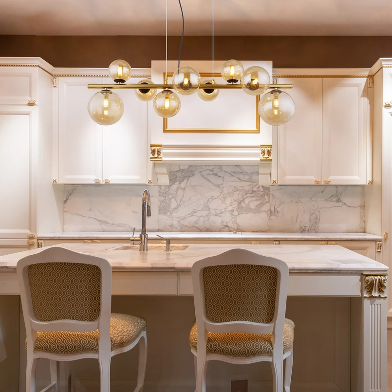 Dank ihrer neun Lichtquellen sorgt die Hängeleuchte Riha für eine gleichmäßige und umfassende Ausleuchtung. Ihre durchdachte Konstruktion ermöglicht eine harmonische Integration in verschiedene Einrichtungsstile, während die Kombination aus Glas und Metall einen modernen Akzent setzt. Diese Leuchte ist die perfekte Wahl für alle, die Wert auf Qualität und Design legen.