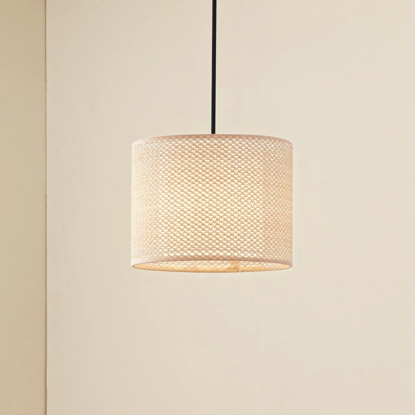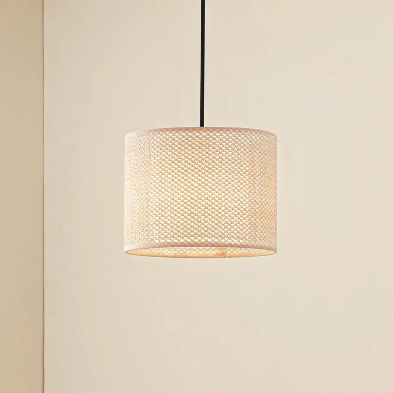Hängeleuchte Soula in Zylinderform aus Kunststoff und Textil