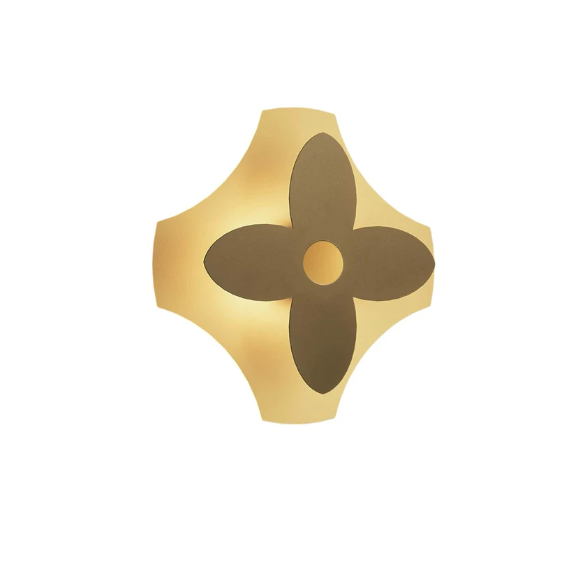 Die Wandlampe Ornato Flower aus Aluminium und Eisen zeigt die moderne Interpretation eines klassischen Motivs aus der italienischen Architektur. Eine braune Frontplatte in der Gestalt einer stilisierten Blüte beherbergt an der Rückseite warmweiße LEDs, deren Licht von der goldfarbenen Wandplatte in den Raum reflektiert wird. Bei Bedarf kann die LED-Wandleuchte Ornato Flower extern gedimmt werden (DALI); mit mehreren Exemplaren lassen sich eindrucksvolle Kreationen aus Form und Licht schaffen.