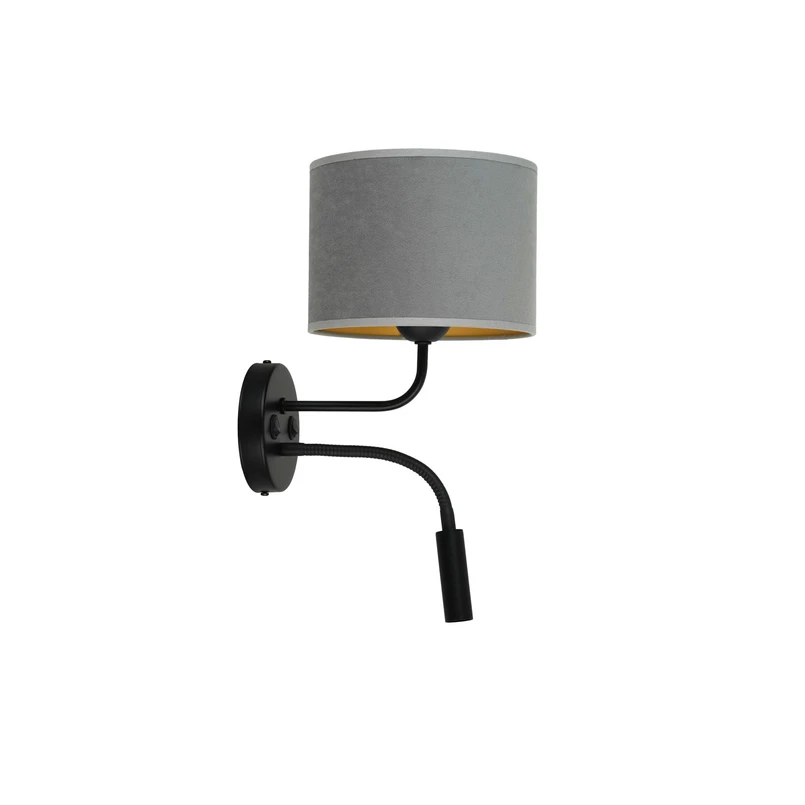 Wandleuchte Roller, Samt grau, schwarz, mit Leselicht